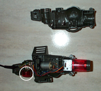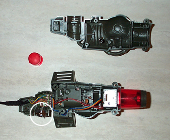 - You now have two halves.. the front, with no electronics, and the back, with all the electronics. Carefully remove the existing red lens as the existing lamp is held in place only by two fine wires.