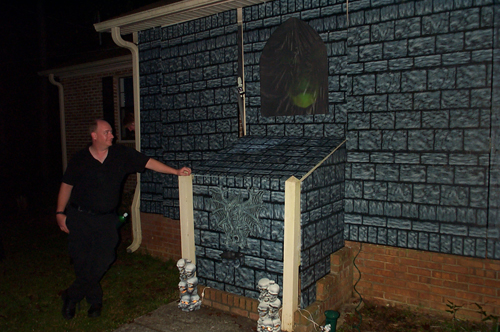 | Ron, Evil Genius #1, guarding our 3' tall version of the Magic Mirror from ImaginEERIEing. Awesome prop! |